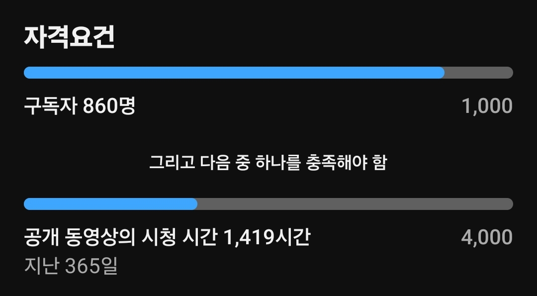 유튜브 구독자 1,000명 다돼가는데 시청시간이 너무 부족해서 수익화가 안될 거 같아😥 유튜브 라이브할 때 핸드폰은 꼭 라이브 틀어서 처음부터 끝까지 시청해주길 부탁할께~! (그럼 시청시간 많이 올라감) 겨울방학 끝나기 전에 수익화 가즈아~ 파이팅!