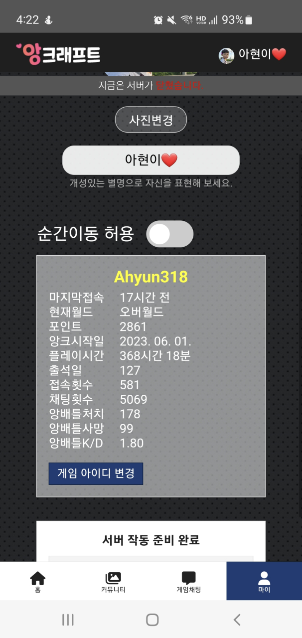 혹시나해서 앙크래프트 커뮤니티 들어왔는데 밴 풀려져있네요 풀어주셔서 감사합니다:)