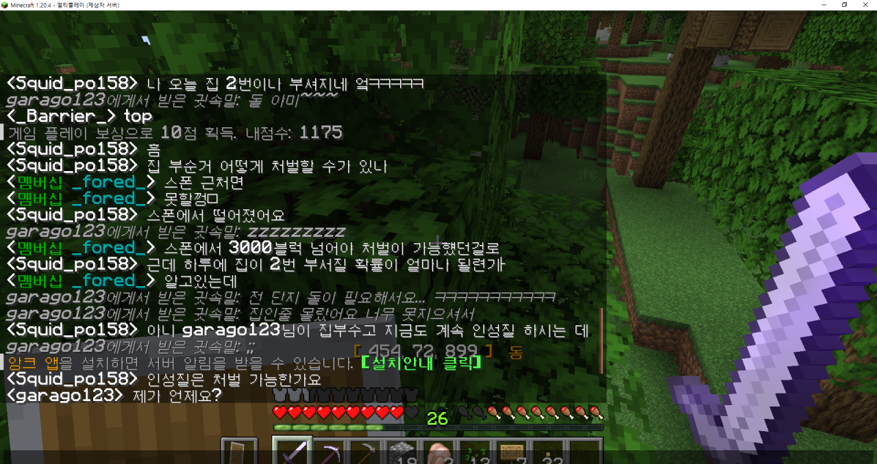 커뮤니티에서 글쓰는 건 처음인데 이렇게 쓰게 되는게 좀 슬프네요... 계속 즐겁게 서버 즐기고 있었는데 집 부수시고 항의하려고 쫓아가니 죽이고 이렇게 인성질까지 하시네요...